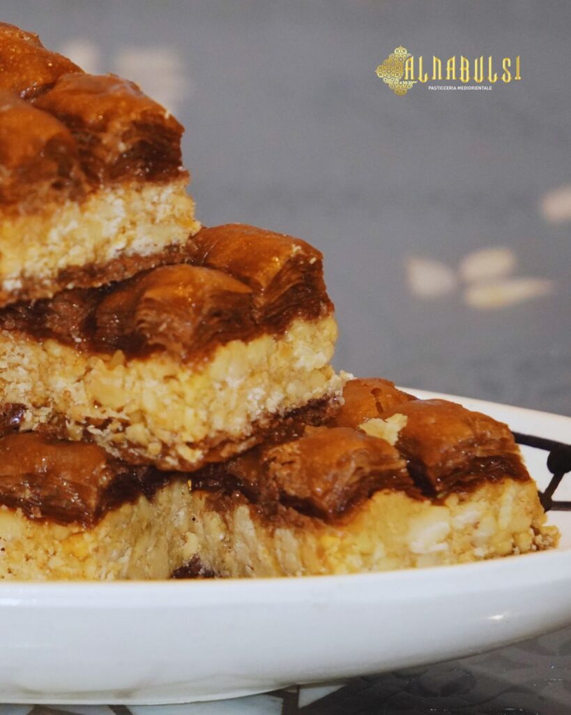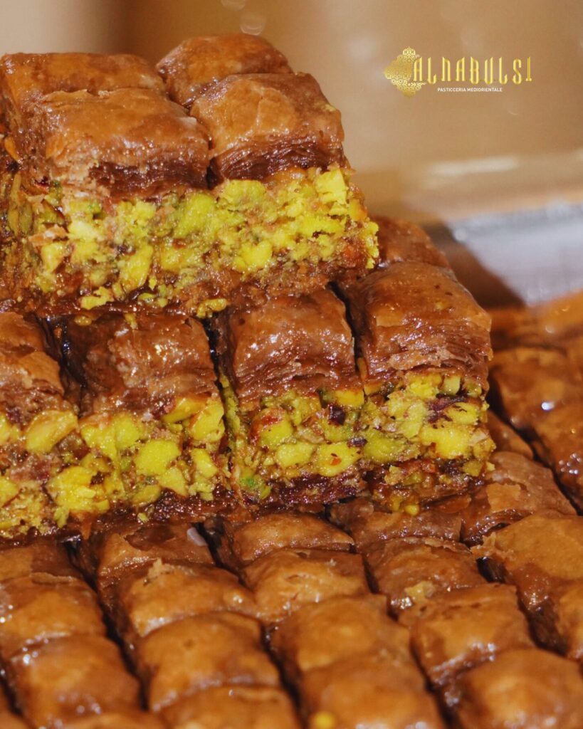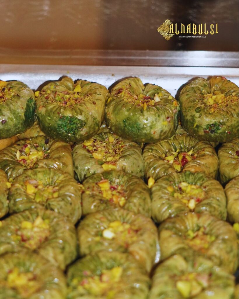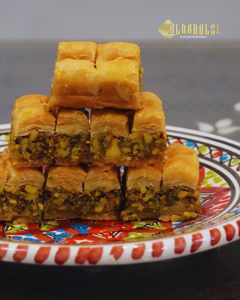 Benvenuti da AlNabulsi, la pasticceria mediorientale nel cuore di Milano! Scopri i sapori autentici del Medio Oriente con i nostri baklava, knafeh e dolci artigianali, preparati con ingredienti di qualità. Vieni a trovarci in Via Panfilo Castaldi 40 e lasciati conquistare dalla nostra tradizione dolciaria!